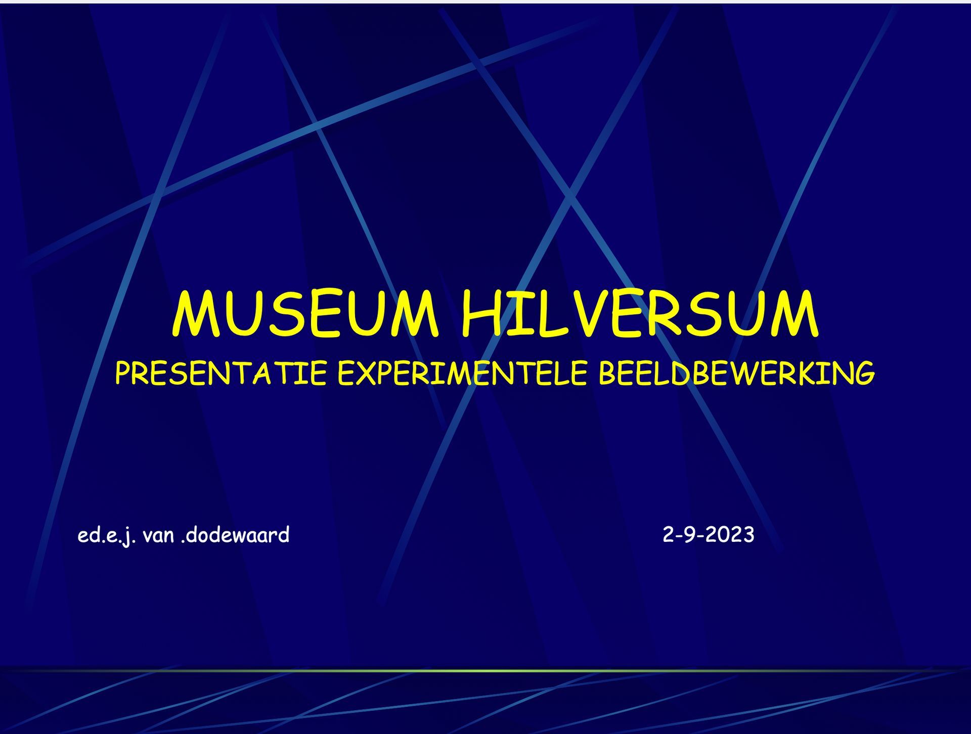 De titel van de presentatie: "Experimentele Beeldbewerking".
